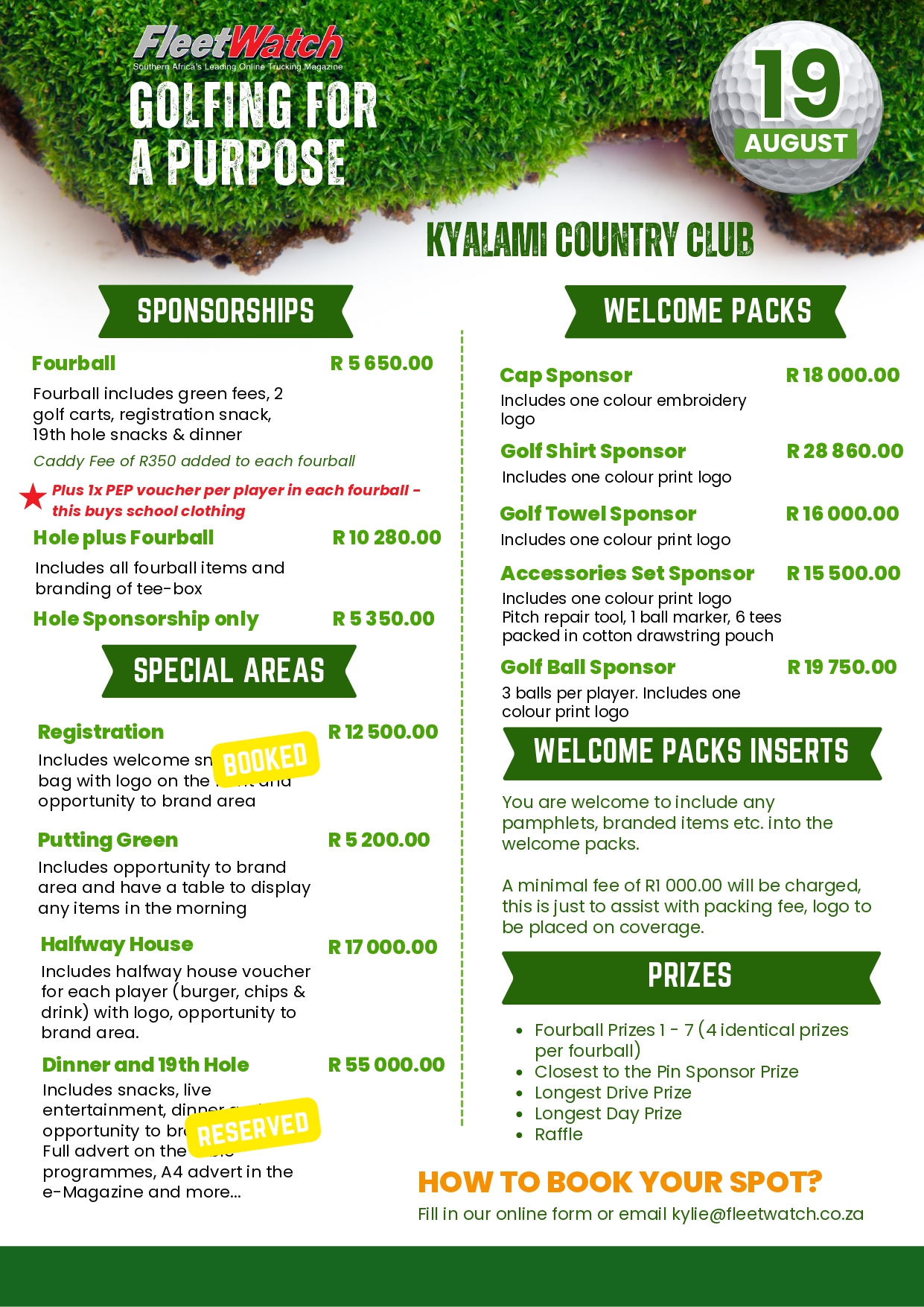 To secure your fourball or sponsorship, click HERE to complete our quick online booking form.