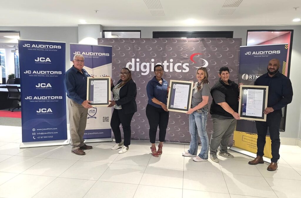 The certification audits were conducted by JC Auditors, a SANAS-accredited and IAF-aligned certification body. JCA’s integrated audit process enabled Digistics to undergo a coordinated assessment across all four standards, “reducing duplication and ensuring comprehensive compliance.”