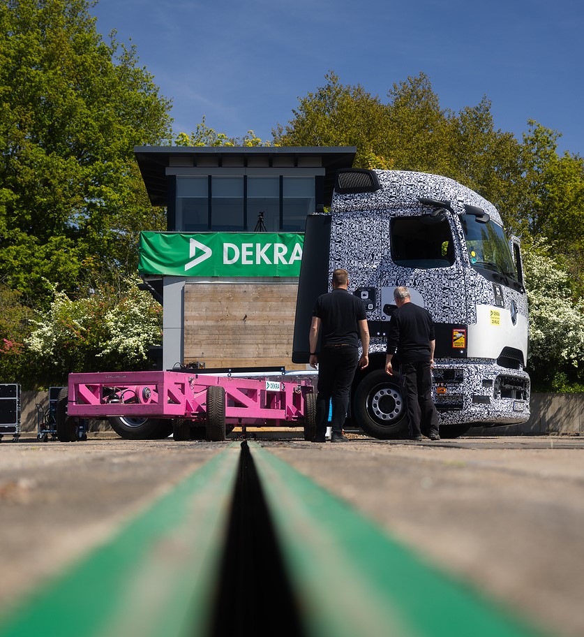 Mercedes-Benz Trucks designed the high-voltage (HV) system with robust insulation, mechanical protection and fire-resistance measures. Each vehicle not only meets but exceeds current legal standards, with results verified by emergency services after each test. “The results clearly confirm our expectations; there would have been no danger here in practical use,” Müller notes.
