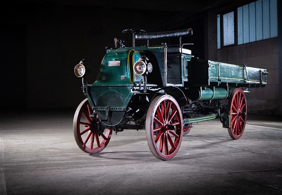 The driver sat on an elevated bench, in the style of a carriage. Despite its simplicity, the truck incorporated a planetary hub reduction axle – a principle still used in heavy-duty vehicles today.