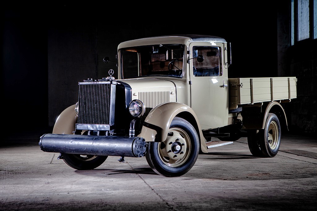 The 1937 Mercedes Benz L 1500 Holzvergaser with wood gas generator, an almost forgotten alternative propulsion technology that was common in Germany until the 1950s.