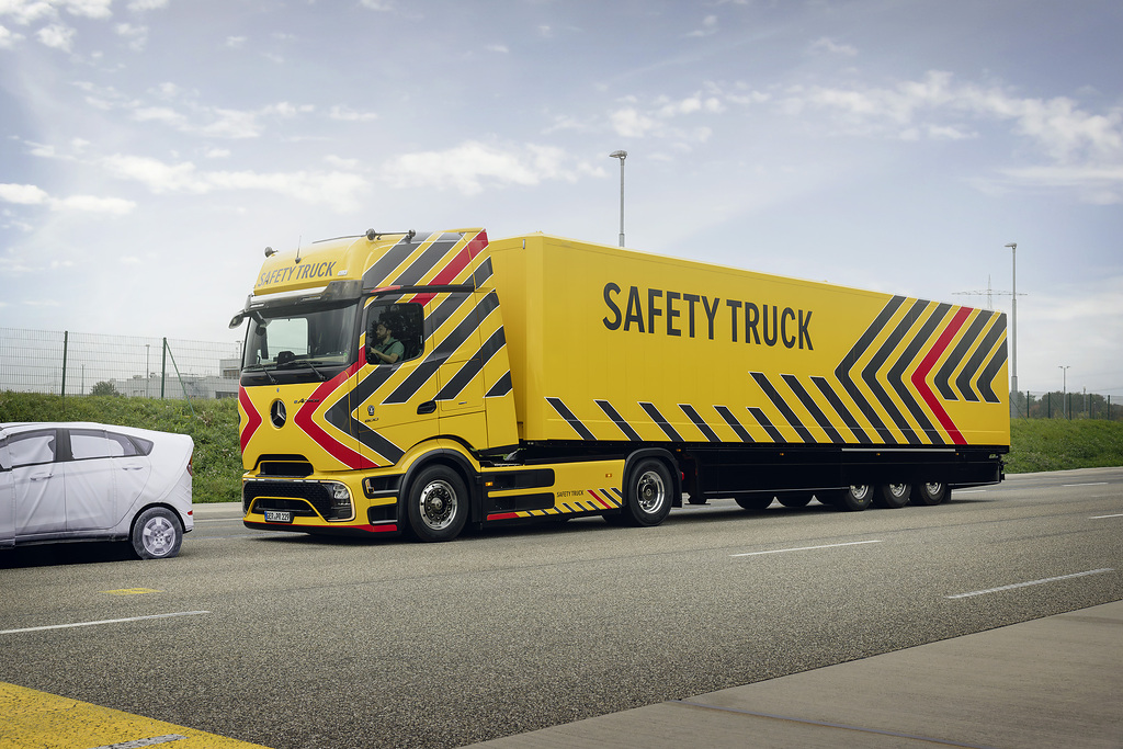 The Mercedes-Benz eActros 600 Safety Truck showcased the latest developments in electrification and active safety. Equipped with a 270-degree sensor fusion system, Active Brake Assist 6 and Active Sideguard Assist 2, the battery-electric flagship demonstrated how predictive electronics now underpin accident prevention strategies.