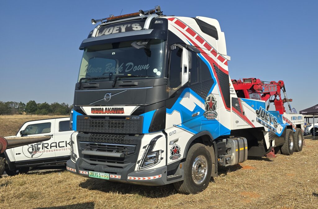 As I was talking to him and looking at the damage to the rear of his link, Clinton Harry of Joeys arrived in his bakkie, took one look and said: “Let’s pull this straight so it’s out the way and keep him and other drivers safe.” He then rushed back to De Hoek and came back not only with one of those magnificent Joeys tow trucks but also with security personnel from 1Track who secured the scene from any potential looting or other criminal activities. In no time, the rig was pulled safely out of the road.
