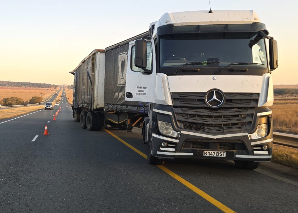 The launch event was staged but what was not staged was when I left all these good folk to head back to Johannesburg. It was just a few kilometres down the road that I came across a truck whose rear trailer was hanging out blocking the left lane of the road. The N3TC support vehicle was there and had put cones out to direct traffic to the right lane. It was getting dark though and it posed a serious danger. The driver and his load were also vulnerable to potential criminals.