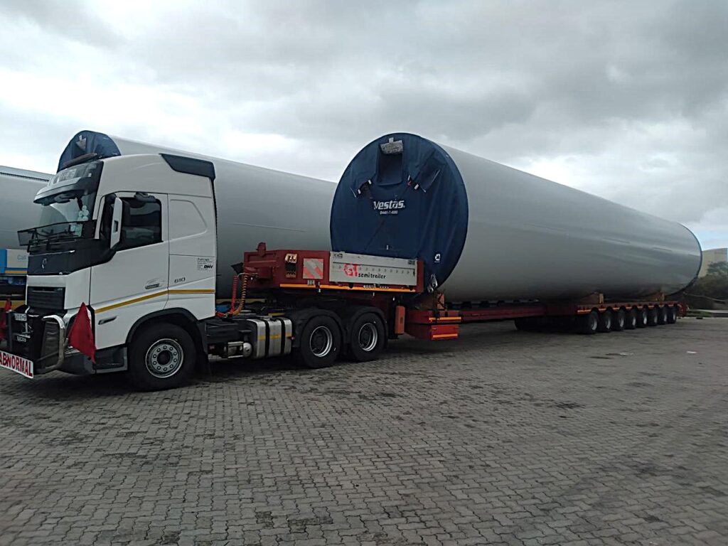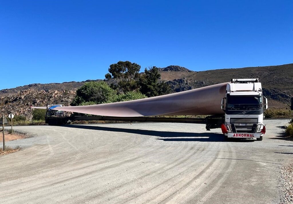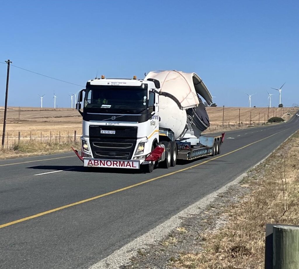 The abnormal haul started from the Saldanha (port) Laydown Area, with turbine tower sections collected from the GRI tower factory in Atlantis – a route that demanded precision planning, serious pulling power and specialist kit.